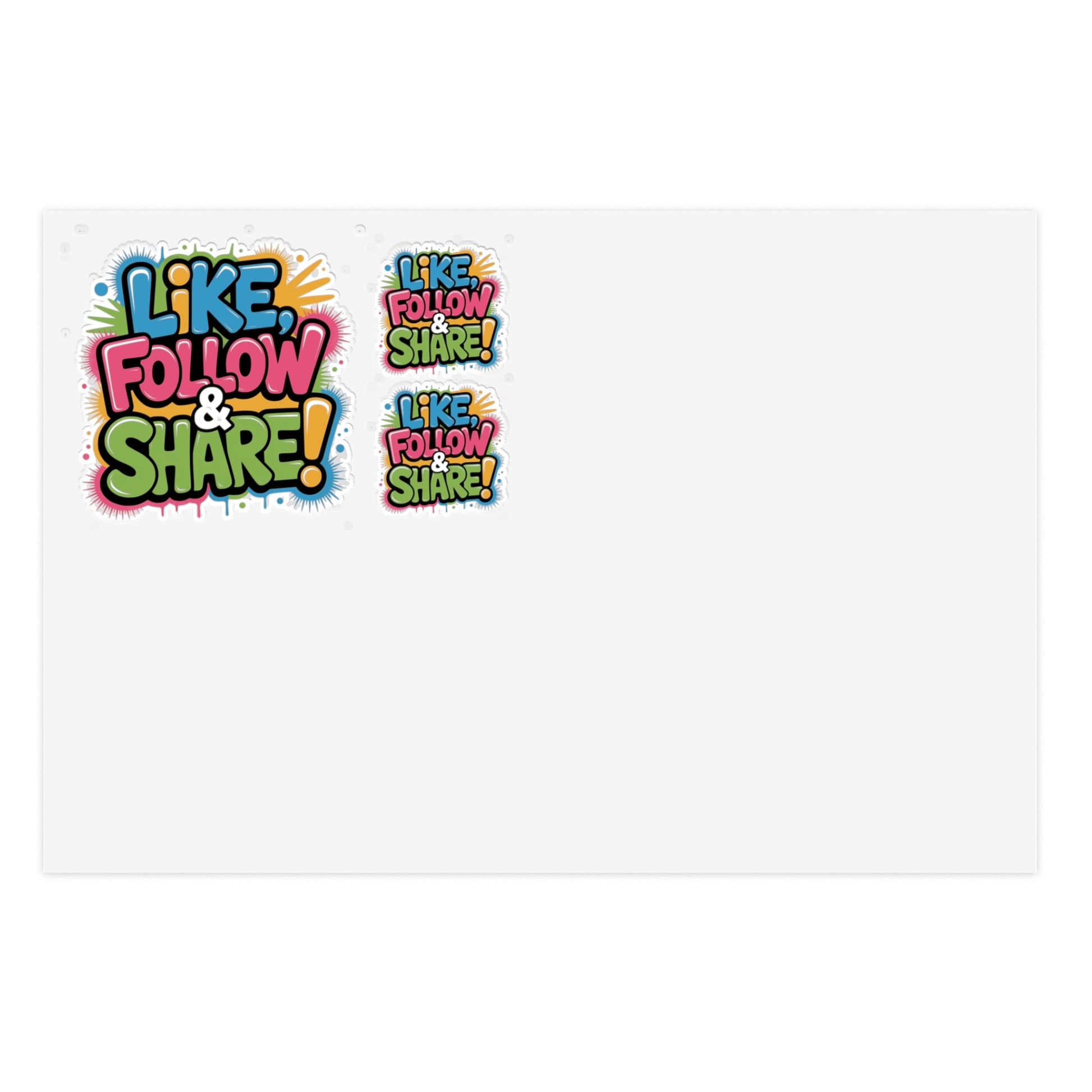 Like Follow & Share! Sticker — 3 Colorful Decals Perfect for TikTok, YouTube, Twitch and more